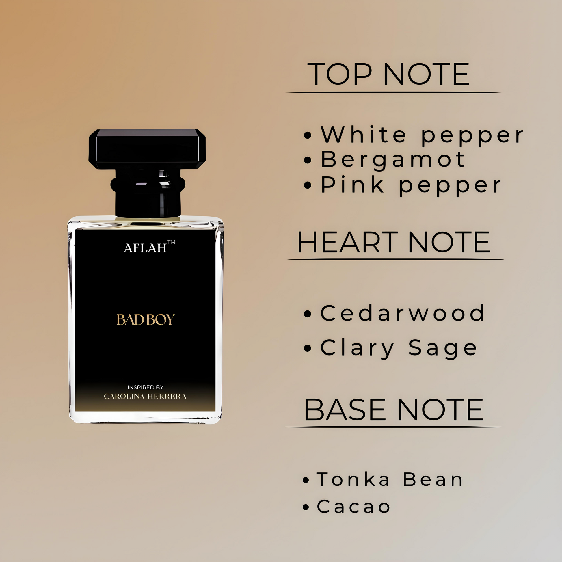 Base Notes - Tonka bean, Cocoa, Amberwood